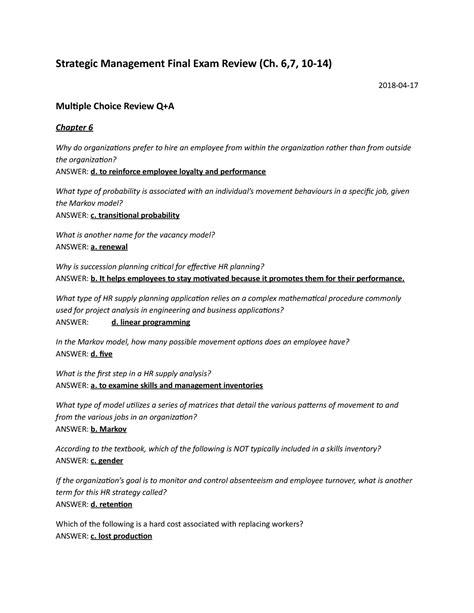 [UniqueID] - Download STRATEGIC MANAGEMENT FINAL EXAM ANSWERS Library Binding